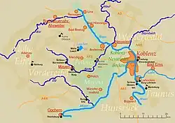The Maifeld is a landscape (a natural region sub-unit) of the Middle Rhine Basin on its western perimeter with the Eifel mountains, southwest of the city of Koblenz. It is known for its gently rolling hills.