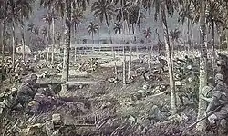 Germany commenced hostilities in 1914 by unsuccessfully attacking from the town of Tanga.[6] The British then attacked the town in November 1914 but were thwarted by General Paul von Lettow-Vorbeck's forces at the Battle of Tanga.[6] The British Royal Navy occupied Mafia Island in January 1915.[6] However, the "attack on Tanga and the numerous smaller engagements that followed [showed] the strength ... of [German forces] and made it evident that a powerful force must be organized before the conquest of [German East Africa] could be ... undertaken. Such an enterprise had ... to await more favourable conditions on European battlefields and elsewhere. But in July, 1915, the last German troops in S.W. Africa capitulated ... and the nucleus of the requisite force ... became available."[6] British forces from the northeast and southwest and Belgian forces from the northwest steadily attacked and defeated German forces beginning in January 1916.[6] In October 1916, General Smuts wrote, "With the exception of the Mahenge Plateau [the Germans] have lost every healthy or valuable part of their Colony".[6]