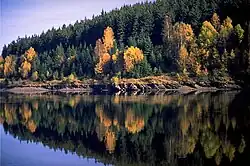 The Mandelholz Dam (German: Mandelholztalsperre) holds back the Kalte Bode Flood Control Basin (Hochwasserschutzbecken Kalte Bode) which is a flood protection reservoir located between the villages of Elend and Königshütte near Wernigerode in the Harz mountains of Germany. It impounds the waters of the Kalte Bode when water levels are high.