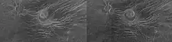 During the mapping cycle 1 (left-looking) radar surface mapping on Venus (September 15, 1990 to May 15, 1991), around 70% of the Venusian surface was mapped by synthetic aperture radar. In cycle 2 (right-looking), 54.5% of the surface was mapped, mainly the south pole regions and gaps from cycle 1 during May 15, 1991 to January 14, 1992. Combining cycle 1 and 2 results in a total coverage of 96% of Venusian surface mapped. Cycle 3 (left looking) filled remaining gaps and collected stereo imagery of approximately 21.3% of the surface, increasing the total coverage to 98%.[3][4][5]