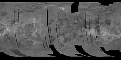 SAR image on Venus. This map is a mosaic of the "left-looking" data collected during cycle 1, produced by the USGS of the Magellan images.