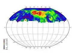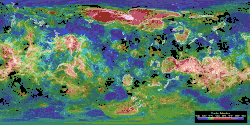 The USGS Branch of Astrogeology[9] has produced full resolution radar maps (also known as FMAPs) of Venus from the SAR data collected from the mission, called the Magellan F-BIDRs (Full resolution Basic Image Data Records). The maps have a coverage of around 92% (combination of the 2 left-looking cycles).[3][10] The resolution is 75 m/pixel, which is the highest resolution Venusian map.