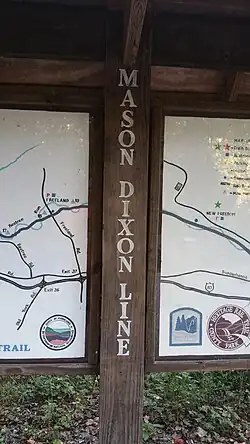 - ↑ Strang, Cameron (2014). "Mason–Dixon Line". The Encyclopedia of Greater Philadelphia. Rutgers University. Retrieved October 26, 2019.