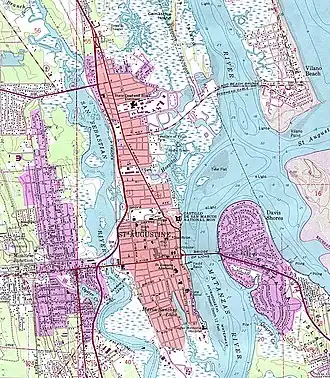 - Wetlands: A large portion of the tidal wetlands directly fronting the bay have been obliterated due to construction of the seawall in the old quarter of St. Augustine and the construction of Davis Shores a residential development created on reclaimed land on Anastasia Island and a subsequent seawall. The portions of the Intracoastal Waterway connected to Matanzas Bay have wetlands of varying amounts and degrees of natural state.