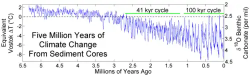 data: doi:10.1594/PANGAEA.704257. - ↑ Raymo, M. E.; Huybers, P. (2008). "Unlocking the mysteries of the Ice Ages". Nature. 451 (7176): 284–285. Bibcode:2008Natur.451..284R. doi:10.1038/nature06589. PMID 18202644. S2CID 4360319.