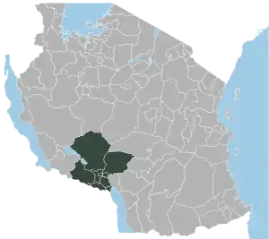 Mbeya Region (Mkoa wa Mbeya in Swahili) is one of Tanzania's 31 administrative regions. The region covers an area of 35,954 km2 (13,882 sq mi).[3] The region is comparable in size to the combined land area of the nation state of Guinea Bissau.[4] Mbeya Region is bordered to the east by Singida Region, Iringa Region and Njombe Region. The region is bordered to the south by Malawi and Lake Nyasa. To the north the region borders southern Tabora Region. Lastly, Mbeya is bordered to the west by Songwe Region. The regional capital is the city of Mbeya. According to the 2022 national census, the region had a population of 2,343,754.[5]