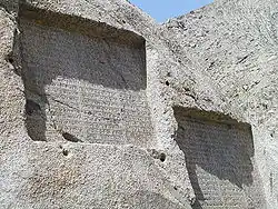 In Achaemenid sources, specifically from the Behistun Inscription (2.76, 77–78), the capital of Media is Ecbatana, called "Hamgmatāna-" in Old Persian (Elamite: Agmadana-; Babylonian: Agamtanu-) corresponding to modern-day Hamadan.[21] The other cities existing in Media were Laodicea (modern Nahavand)[22] and the mound that was the largest city of the Medes, Rhages (present-day Rey). The fourth city of Media was Apamea, near Ecbatana, whose precise location is now unknown.