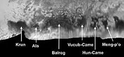 - ↑ Rogers, Adam (14 July 2015). "The New, Nerdy Mythology of Pluto's Place Names". Wired. Retrieved 14 July 2015.