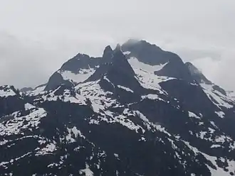 ![]() The Middle Finger is the highest peak, just in the clouds | |