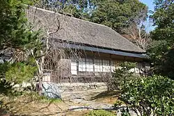 The former Nagaoka residence (旧長岡家住宅 Kyū Nagaoka-ke Jūtaku) was originally located at the foot of the southern slopes of the Sanuki Mountains. In 1976 the residence was designated a National Important Cultural Property. In 1979 it was disassembled and reassabled in the Wakimachi area. The house is 12 meters long and 6,6 meters wide. It has a Yosemune-tsukuri (寄棟造り) thatched roof. The outside walls are made from mud and earth. This is characteristic for houses on the foot of the southern slopes of the Sanuki mountains (due to the lack of rainfall).