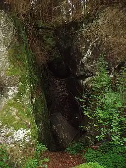 The beginnings of smelting go back to the start of mining in the Upper Harz in the Early Middle Ages. In medieval metallurgy, so-called nomadic smelting (Wanderverhüttung) predominated. The smelting sites were only used for a few weeks and followed the logging of the requisite wood. For the charcoal that was needed for the reduction of the ore, oak and beech wood were especially well-suited. The billets of wood were located near the smelting sites. The low shaft kilns (Schachtöfen) were built of natural rock and earth from the vicinity, and were by no means simple in their construction. They could only be used for a few days of continuous furnace campaign. Fixed buildings were not erected. Over 200 slag sites and smelting sites have been archaeologically recorded from this smelting period. Since the 1980s the mining archaeology team of Lothar Klappauf and Friedrich-Albert Linke have carried out excavations and undertaken a considerable amount of archeological and archaeometallurgical research.[8] The high medieval smelting technology of the 10th to 12th centuries at the Rammelsberg was well established and complex. The wood dweller (Silvani), i.e. those who were doing the smelting in the woodlands, were able to produce copper, lead and silver from the poly-metallic ores of the Rammelsberg.[9]