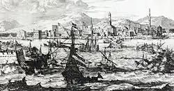 Passing through Mocha in 1752 and 1756, Remedius Prutky found that it boasted a "lodging-house of the Prophet Muhammad, which was like a huge tenement block laid out in many hundred separate cells where accommodation was rented to all strangers without discrimination of race or religion." He also found a number of European ships in the harbor: three French, four English, two Dutch, and one Portuguese.[14] In the 18th century, a plague killed half of the city's population, from which time the city never really recovered.[11]