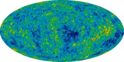 - ↑ Bennett, C.L.; Larson, L.; Weiland, J.L.; Jarosk, N.; Hinshaw, N.; Odegard, N.; Smith, K.M.; Hill, R.S.; Gold, B.; Halpern, M.; Komatsu, E.; Nolta, M.R.; Page, L.; Spergel, D.N.; Wollack, E.; Dunkley, J.; Kogut, A.; Limon, M.; Meyer, S.S.; Tucker, G.S.; Wright, E.L. (2013). "Nine-Year Wilkinson Microwave Anisotropy Probe (WMAP) Observations: Final Maps and Results". The Astrophysical Journal Supplement Series. 208 (2): 20. arXiv:1212.5225. Bibcode:2013ApJS..208...20B. doi:10.1088/0067-0049/208/2/20. S2CID 119271232.
