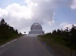 An observatory Observatoire du Mont Mégantic (OMM) is located on the mountain's summit, which is the highest point in Québec accessible by road. The mountain is in the middle of the 55 km2 (21 sq mi) Parc national du Mont-Mégantic.[4] The annual Tour de Beauce bicycle race is routed over Mont Mégantic.