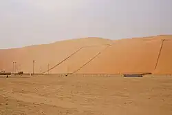 Moreeb Dune or Tal Moreeb (تل مرعب Mor'ib Hill) is a large sized sand dune located in proximity of Liwa Oasis at the Empty Quarter desert in the United Arab Emirates. With a reported 50 degree slipface, and height of 300 metres,[1] the dune is popular for organised Liwa Moreeb Dune Festival and drag races competitions. Moreeb Hill is the tallest dune in the UAE, and one of the largest hill climbs in the world.[2] Moreeb Dune is one of the highest sand hills in the world. The dune is 1600 meters long.