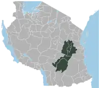 Morogoro Region (Mkoa wa Morogoro in Swahili) is one of Tanzania's 31 administrative regions. It covers an area of 70,624 km2 (27,268 sq mi).[3] and is comparable in size to the combined land area of the nation state of Ireland.[4] Morogoro Region is bordered to the north by the Manyara Region and Tanga Region, to the east by the Pwani and Lindi Regions, to the south by the Ruvuma Region and to the west by the Iringa Njombe and Dodoma Regions. The regional capital is the municipality of Morogoro. According to the 2022 national census, the region had a population of 3,197,104.[5][6]
