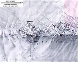 - ↑ Which reaches an elevation of 1,400 metres (4,600 ft) here[13] and piles up against the volcano, resulting in a 800 metres (2,600 ft) height difference between the northern and southern flanks of Mount Berlin.[14]