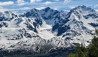 Mount Billy Mitchell is a prominent 6,919-foot (2,109 m) peak located in the Chugach Mountains, 35 miles (56 km) east of Valdez and 12 miles (19 km) west of the Copper River in the U.S. state of Alaska.[2] This mountain forms a prominent and easily visible landmark between mile markers 43 and 51 of the Richardson Highway, as the highway passes just to its west between Tonsina and the Thompson Pass (see photograph).