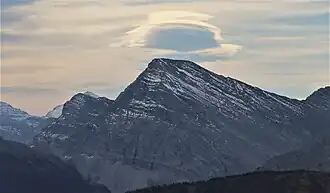 Mount Bishop is a mountain named in 1918 after W.A. "Billy" Bishop VC who was a Colonel and a Canadian fighter pilot awarded the Victoria Cross during World War I.[4] It is located in the Elk Range of the Canadian Rockies and sits on the Continental Divide, which forms the British Columbia-Alberta border in this area.[1][2]