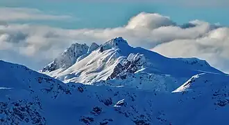 Mount Callaghan is a mountain east of the headwaters of the Squamish River,[2] just northeast of the Powder Mountain Icefield and just south of the Pemberton Icefield in the Sea to Sky Country of southwestern British Columbia, Canada, about 20 km directly west of the Resort Municipality of Whistler. A crack was observed across Callaghan's summit in the spring of 1999. In 2000, a section of the summit collapsed.[1] Callaghan Lake lies below the south face of the mountain.