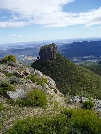 Mount Ningadhun, also known as Castle Rock, Ningadoon (Hunt), and Ningadhun,[1] is a mountain on the Nandewar Range, a spur off the Great Dividing Range, is located in the North West Slopes region of New South Wales, Australia. Mount Ningadhun is situated east of Narrabri, within the Mount Kaputar National Park