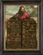 The biblical account of the giving of the instructions and teachings of the Ten Commandments was given in the Book of Exodus, primarily between chapters 19 and 24, during which Sinai is mentioned by name twice, in Exodus 19:2; 24:16. In the story Sinai was enveloped in a cloud,[7] it quaked and was filled with smoke,[8] while lightning-flashes shot forth, and the roar of thunder mingled with the blasts of a trumpet;[7] the account later adds that fire was seen burning at the summit of the mountain.[9] In the biblical account, the fire and clouds are a direct consequence of the arrival of God upon the mountain.[10] According to the biblical story, Moses departed to the mountain and stayed there for 40 days and nights in order to receive the Ten Commandments and he did so twice because he broke the first set of the tablets of stone after returning from the mountain for the first time.