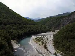 Block mountains are caused by faults in the crust: a plane where rocks have moved past each other. When rocks on one side of a fault rise relative to the other, it can form a mountain.[24] The uplifted blocks are block mountains or horsts. The intervening dropped blocks are termed graben: these can be small or form extensive rift valley systems. This kind of landscape can be seen in East Africa,[25] the Vosges and Rhine valley,[26] and the Basin and Range Province of Western North America.[27] These areas often occur when the regional stress is extensional and the crust is thinned.[27]
