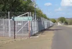 The tripoint with Zimbabwe is located at Crooks' Corner, in the Limpopo River either at or very close to its confluence with the Luvuvhu River.[2] The border runs in a straight line from this tripoint to the Shingwedzi River, and then along a series of straight lines joining beacons generally along the top of the eastern slope of the Lebombo Mountains.[1] It crosses the Olifants, Sabie and Komati rivers. This segment of the border terminates at the northern Eswatini tripoint at Mpundweni Beacon near Namaacha.