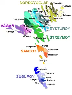 ^ Tórshavn is both the capital of the Streymoy region and its own region, the latter being identical with Tórshavn municipality, but not including the area of the former Kollafjarðar kommuna.
