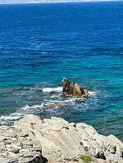 • Camel Rock – a rock formation off the coast and near the windmills at "Kato Mili". It derives its name from its appearance which resembles a camel sitting in the shallow blue and green water.