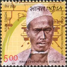On 27 June 2004, an Indian postage stamp featuring Nain Singh[11] was issued commemorating his role in the Great Trigonometric Survey of India. In 2006, Shekhar Pathak and Uma Bhatt brought out a biography of Nain Singh with three of his diaries and the RGS articles about his travels in three volumes titled Asia ki Peeth Par published by Pahar, Naini Tal.