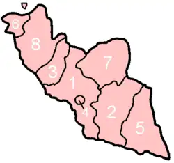 | Map ref. | Administrative division | Capital | Type | Area (km2) | Population (August 1, 2011, estimate)[96] | Notes |