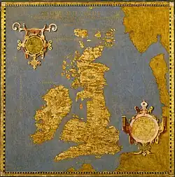 According to Irmeli Valtonen in 2008, on the so-called Cotton mappa mundi, an Anglo-Saxon mappa mundi based on the Old English Orosius, "The largest feature is the British Isles, which is indicated by the inscription Brittannia".[102]