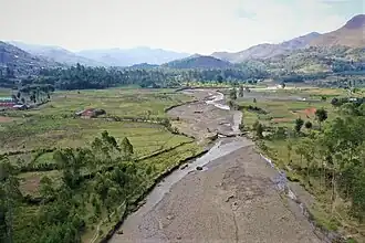 - Ruzizi River Basin: This basin drains water from the Kashenyi (or Kamanyola), Karhongo (or Nyangezi), and Kamisimbi groupements.[15] Key rivers include the Mugera, sourced in the Nyanfunze Mountains and draining waters from Karhongo, including thermal waters from Mahyuza; the Mugaba River, rising in the Kaziba Chiefdom; and the Luzinzi River, which crosses Kaziba Chiefdom and collects the majority of its water from the region. Additional rivers include the Boga River, originating in the Ngali village of the Karhongo groupement.[15]