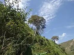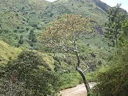 The chiefdom is characterized by two main types of vegetation: natural and artificial. Natural vegetation can be found throughout the forests of Kaniola (Lushoze and Mugaba), Tubimbi, and Kabugi, alongside scattered grasslands.[15] Artificial vegetation is represented by plantations and woodlands comprising eucalyptus, pine, grevilleas, cinchona, coffee, and tea trees. Notable plantations include those in Okra, Irabata, Muleke, Cibeke, Isingo, Nduba, and Muzinzi (Kaderhe, Nyangezi).[15] A significant aspect of Ngweshe Chiefdom's environment is the deforestation of much of the mountain and hill areas, previously subjected to reforestation efforts during the Belgian colonial period. Regions such as the Businga hills (Nyangezi), Cibeke (Burhale), and the "Mise en garde" escarpment overlooking the Tubimbi Commercial Center have experienced severe erosion, leading to a loss of forest cover.[15]