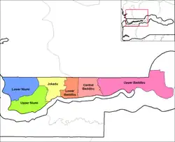 North Bank is divided into six districts, namely, Central Baddibu, Jokadu, Lower Baddibu, Lower Niumi, Upper Baddibu and Upper Niumi. The city and area council elections were held during April 2002, when Kanimang Sanneh, an APRC candidate became the Mayor, winning 64.2 per cent votes. The council was led by Alliance for Patriotic Reorientation and Construction (APRC), which won all fourteen seats.[9]