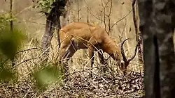 After centuries of human habitation and manipulation, very little of the North's indigenous wildlife survives. Of the countless species that once roamed the area, today only hippopotami, jackals, various monkeys such as baboons, and various species of reptile exist in human-inhabited areas. The region's full diversity of species is today only extant in the handful of protected areas. The Bénoué National Park (Parc National de la Bénoué) protects 1,800 square kilometres southeast of Garoua at the province's centre. It shelters many large mammal species, including hartebeest, hippopotami, kob, and waterbuck, as well as smaller numbers of buffalo, giant eland, elephants, lions and reptiles such as crocodiles. It has been a protected area since 1968.