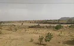 Farmers often create their fields by burning an area of its vegetation during the dry season. Only fruit trees or trees useful for animal fodder or firewood are kept, such as baobab, faidherbia, and karita. Crops are planted at the first rains. Traditional farms are laid out in concentric circles centred on the village. These are surrounded by hedges or fences aimed at keeping out livestock. In the Mandara Mountains, these circular plots follow the slope of the mountains in terraces. Virtually nothing grows during the long dry season, so most food must be ground and stored in granaries for use during the rest of the year. Dry season sorghum (Muskwari) is grown along the river banks, relying on the moisture left behind as the rivers recede.