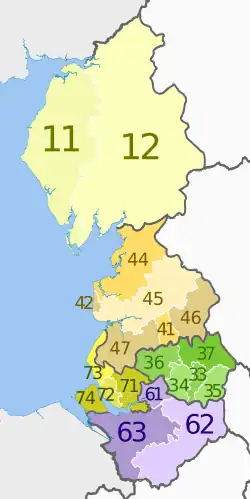 - ↑ NUTS: North West (England) Directory Archived 16 October 2015 at the Wayback Machine, Office for National Statistics, accessed 11 March 2016