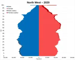 - 1 2 3 UK Census (2021). "2021 Census Area Profile – North West Region (E12000002)". Nomis. Office for National Statistics. Retrieved 14 August 2023.