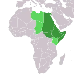 Northeast Africa, or Northeastern Africa, or Northern East Africa as it was known in the past, encompasses the countries of Africa situated in and around the Red Sea. The region is intermediate between North Africa and East Africa, and encompasses the Horn of Africa (Djibouti, Eritrea, Ethiopia, and Somalia), as well as Egypt and Sudan, and in addition to, although rarely, South Sudan.[1][2][3][4][5][6][7] The region has a very long history of habitation with fossil finds from the early hominids to modern human and is one of the most culturally and linguistically diverse regions of the world, being the home to many civilizations and located on an important trade route that connects multiple continents;[8][9][10][11][12] Gamal Abdel Nasser, the second president of Egypt (which is the most northeastern African country) once described it as "the crossroads of the world, the thoroughfare of its traders and passageway of its armies."[13]