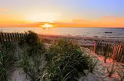 While most of the Northeastern United States lie in the physiographic region of the Appalachian Highlands, some are also part of the Atlantic coastal plain, which extends south to the southern tip of Florida. The coastal plain areas include Cape Cod in Massachusetts, Long Island in New York, and most of New Jersey, and are generally low and flat with sandy soil and long tidal marsh waterways.[10] The highlands, including the Piedmont and the Appalachian Mountains, are heavily forested, ranging from rolling hills to summits greater than 6,000 feet (1,800 m), and pocked with many lakes.[10] The highest peak in the Northeast is Mount Washington in New Hampshire at 6,288 feet (1,917 m).[81]