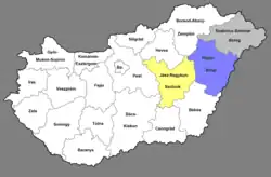 The Northern Great Plain (Hungarian: Észak-Alföld ['eːsɒk 'ɒlføld]) is a statistical (NUTS 2) region of Hungary. It is part of the Great Plain and North (NUTS 1) region. The Northern Great Plain includes the counties of Hajdú-Bihar, Jász-Nagykun-Szolnok, and Szabolcs-Szatmár-Bereg, with a total area of 17,749 km2 (6,853 sq mi) and a population of around 1.5 million.[3] The region is in the eastern part of Hungary. It borders northern Hungary to the north, Ukraine to the north-east, Romania to the south-east, the Southern Great Plain region of Hungary to the south, and central Hungary to the west. The region's centre, and capital city is Debrecen, the second largest city within Hungary.