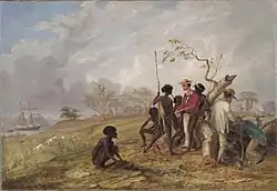 From the 17th or 18th century AD onwards, traders from Sulawesi established extensive seasonal trade links with the Indigenous peoples of Kimberley region, the modern-day Northern Territory, and Arnhem Land.[16] They collected trepang (sea cucumber) for Chinese markets and introduced several goods and technologies to the Indigenous peoples.[16] There is significant evidence of contact with Makassan fishers in examples of Indigenous Australian rock art and bark painting of northern Australia, with the Makassan perahu a prominent feature.[17][18]