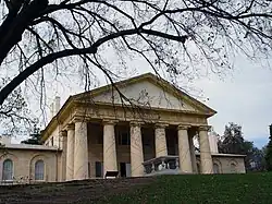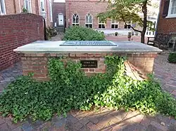 Lord Fairfax maintained neutrality as the American Revolutionary War began in 1775. Just a few weeks after the surrender of British Army troops under General Cornwallis at Yorktown, Fairfax died at his home at Greenway Court on December 9, 1781, at the age of 90. He was entombed on the east side of Christ Church in Winchester.[16] While his plans for a large house at Greenway Court never materialized, and his stone lodge is now gone, a small limestone structure he built remains on the site in his honor.[11]