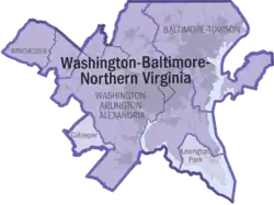 ![]() The counties of Virginia that form part of the Washington–Baltimore combined statistical area | |