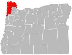 Northwest Oregon is a geographic and cultural region of the U.S. state of Oregon, composed of Clatsop, Columbia, and Tillamook counties.[1] The region encompasses the northernmost parts of the state along the lower Columbia River.