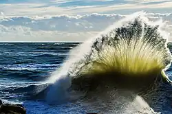 Beyond the Gironde estuary begins the Côte d’Argent (Silver Coast), large expanse of almost straight sand bordered by pine trees and large lakes Landes, punctuated by small resorts such as Soulac-sur-Mer, Vendays-Montalivet (famous for its naturist center) Hourtin, Lacanau, Biscarrosse, Mimizan, Hossegor or Capbreton. The Bassin d'Arcachon, which forms an indentation between Gironde and Landes coast, focuses on Arcachon, another seaside resort, nestled in the heart of the pine forest. It faces the Cap Ferret, beaten by the waves of the ocean. In continuation of the Côte d'Argent, the Basque coast is structured around Biarritz, Mecca of seaside tourism, Saint-Jean-de-Luz and Hendaye, and is famous for its eroded cliffs and powerful rollers which make it a favourite spot for surfers.