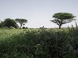 The Nugaal Valley is a key pastoral area which spans across four regions, Nugal and Bari in Somalia and Sool, Sanaag and Togdheer in Somaliland.[2] Pastoral nomadism is the primary way of life for most of the people living in the valley. Goat and camel raising form the basis of the economy, and frankincense and myrrh are collected from wild trees. The beds of the watercourses have a few permanent wells, to which the predominantly nomadic population returns during the dry season. Low and erratic rainfall (about 5 inches 125 mm annually) and the high salinity of the soil limit crop cultivation.[3] The segments of the Nugaal valley from Garowe eastwards is traditionally referred to as Bari Nugaaleed or Bari Nugaal, whilst segments of the valley which converge into the Iyah plains are called Jednugaal. Nonetheless, the latitudinal limits of Nugaal proper traditionally refers to the territory stretching from Garowe in the east until Saraar in the west.[4]