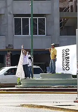 From the Mexican Revolution until the 2000s, the ruling PRI party controlled almost all Oaxacan politics, from the local to the state level.[26] Challenges to the rule were sporadic and included the student movements of the 1970s, which did bring down the state government.[27] Teachers' strikes were frequent thereafter, culminating in the 2006 uprising in Oaxaca city, which brought in groups protesting the heavy marginalization of the poor.[24] The PRI lost its 80-year hold on the state government in 2010 with the election of the PAN gubernatorial candidate Gabino Cué Monteagudo. This has led to speculation of major changes for the state.[26]